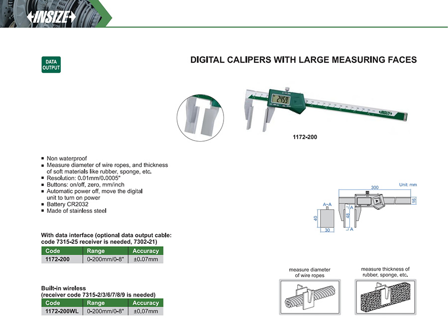 1172-200WL 0-200mm/0-8" ±0.07mm 0.01mm/0.0005" built-in wireless
