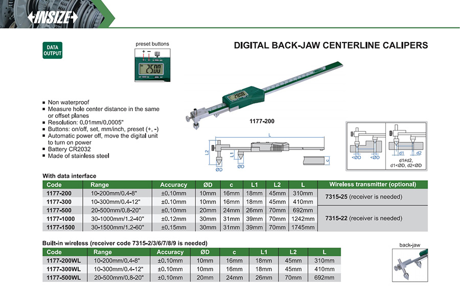 1177-200WL 10-200mm/0.4-8" ±0.10mm 0.01mm/0.0005" built-in wireless