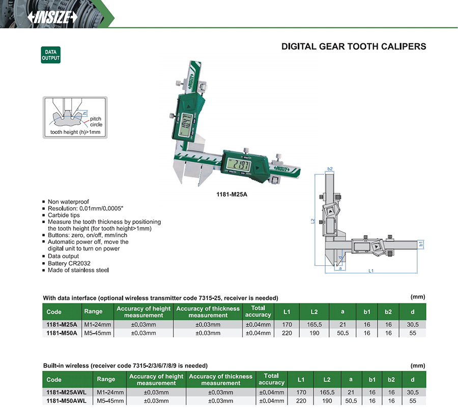 1181-M50AWL M5-45mm ±0.03mm 0.01mm/0.0005" built-in wireless