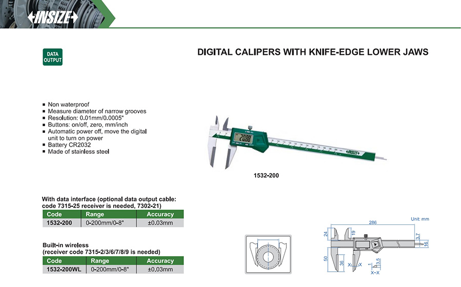 1532-200WL 0-200mm/0-8" ±0.03mm 0.01mm/0.0005" built-in wireless