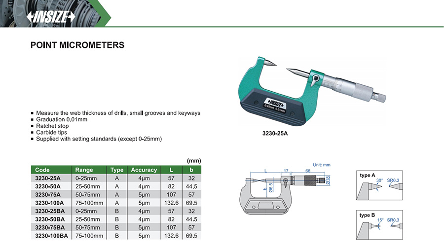 | 3230-25BA | B | 0-25mm | 4μm | 0.01mm |