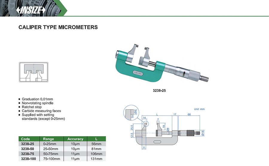 | 3238-25 | 0-25mm | 10μm | 0.01mm |