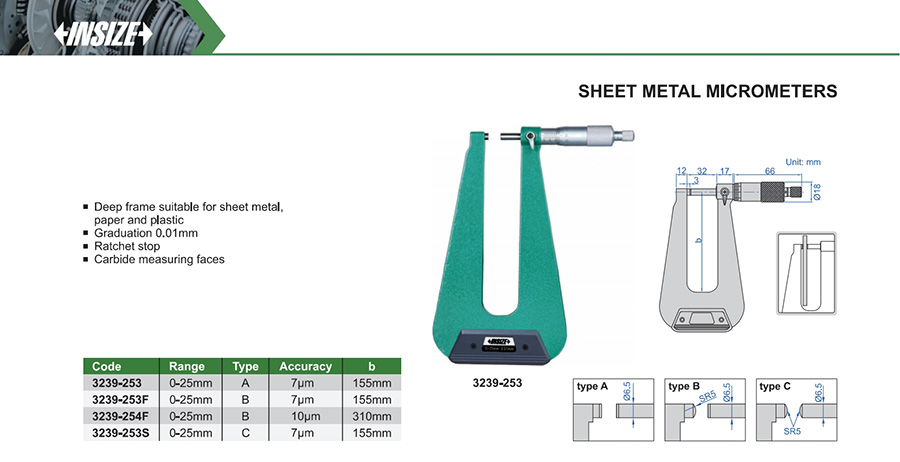| 3239-253S | C | 0-25mm | 7μm | 0.01mm |