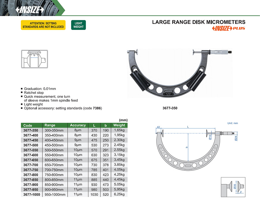 | 3677-1000 | 950-1000mm | 11μm | 0.01mm |