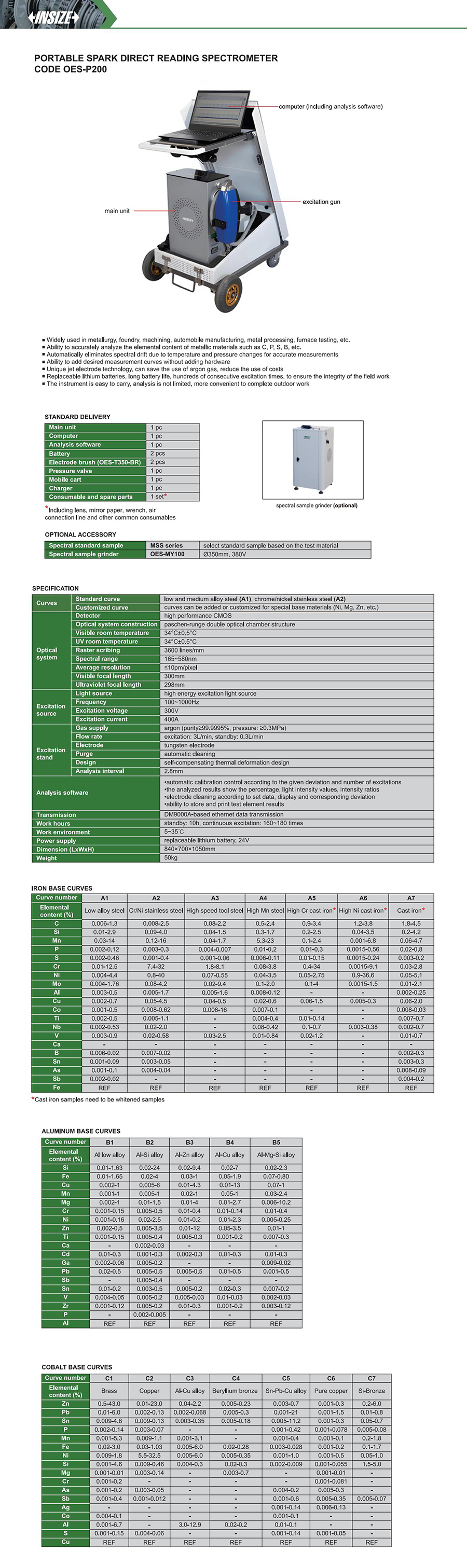 | OES-P200 | OES | component analysis | metal | portable | no |
