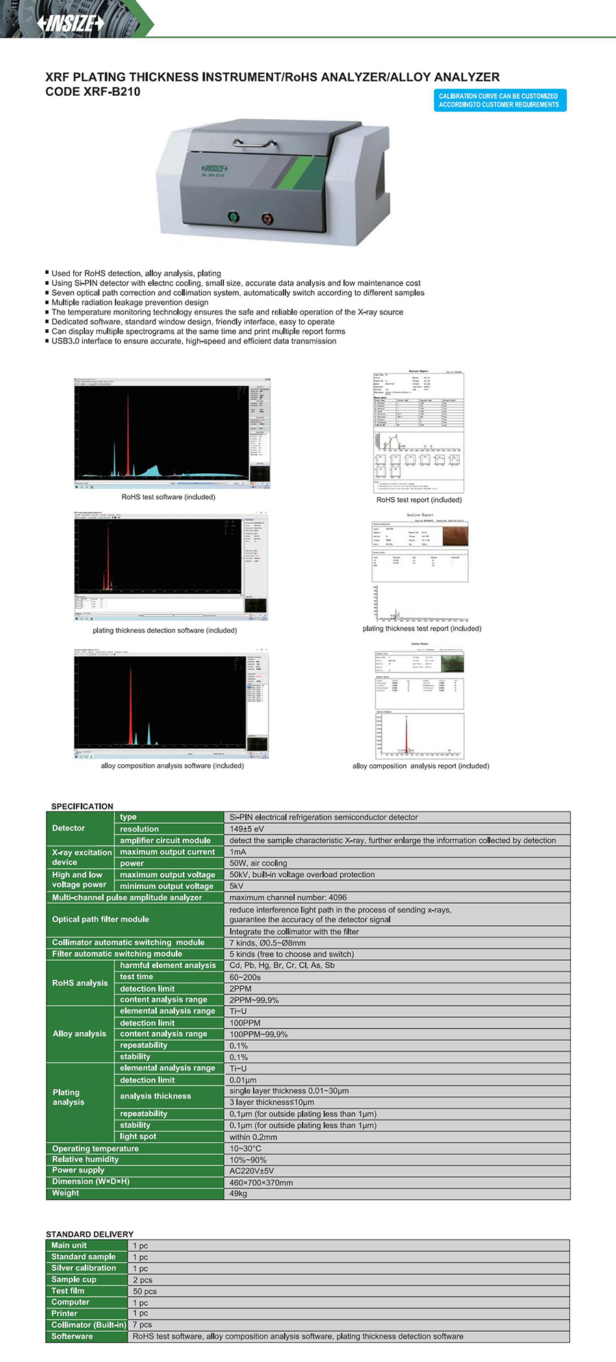 Used for RoHS detection, alloy analysis, plating analysis