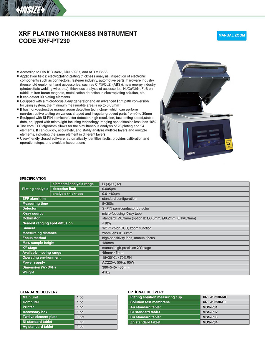 XRF-PT230 XRF plating measurement metal plating benchtop yes