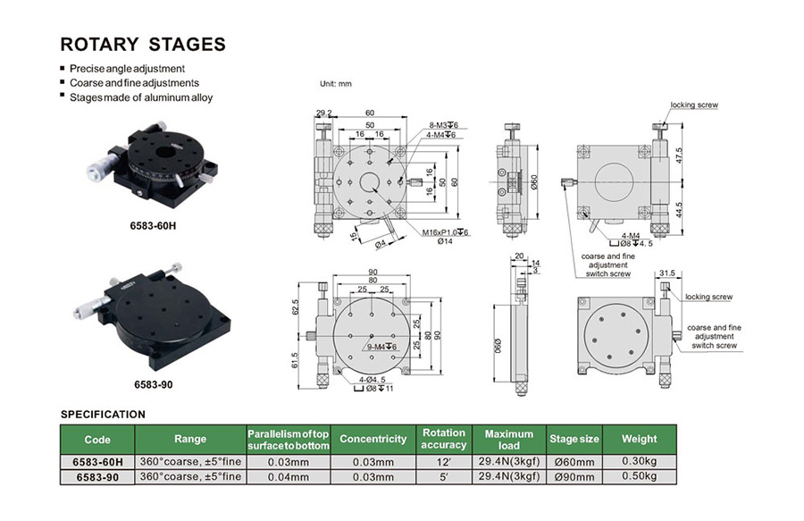 6583-60H 360° coarse, ±5° fine 0.03mm Ø60mm