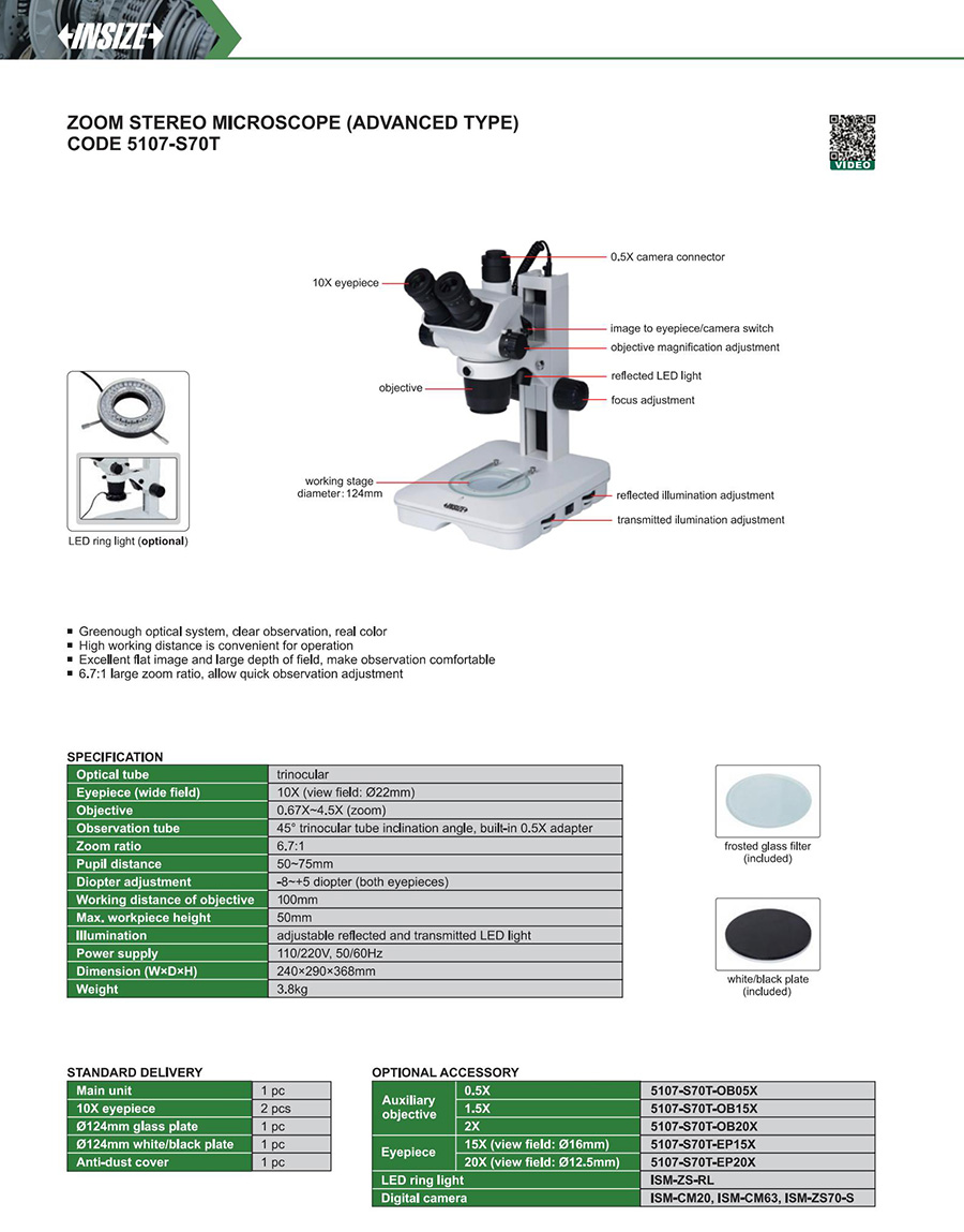 5107-S70T 10X 0.67X~4.5X trinocular 1: 6.7 50mm