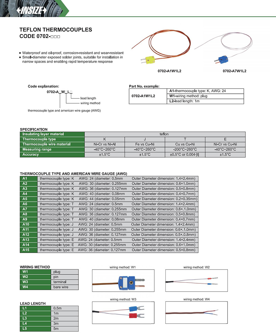| 0702-□□ | E | thermocouple | -40°C~260°C | ±1.5°C |