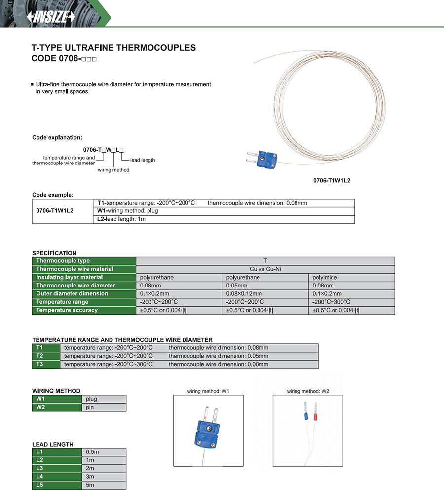 | 0706-□□ | T | thermocouple | -200°C~300°C | ±0.5°C or 0.004∙|t| |