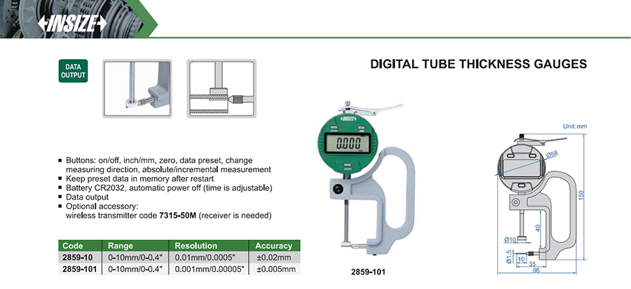 2859-101 0-10mm/0-0.4" ±0.005mm 0.001mm/0.00005"