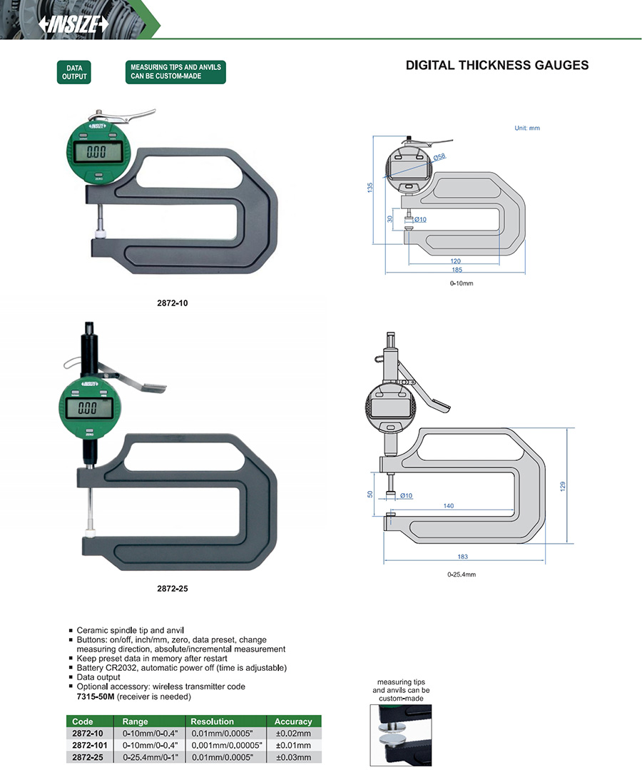 2872-10 0-10mm/0-0.4" ±0.02mm 0.01mm/0.0005"
