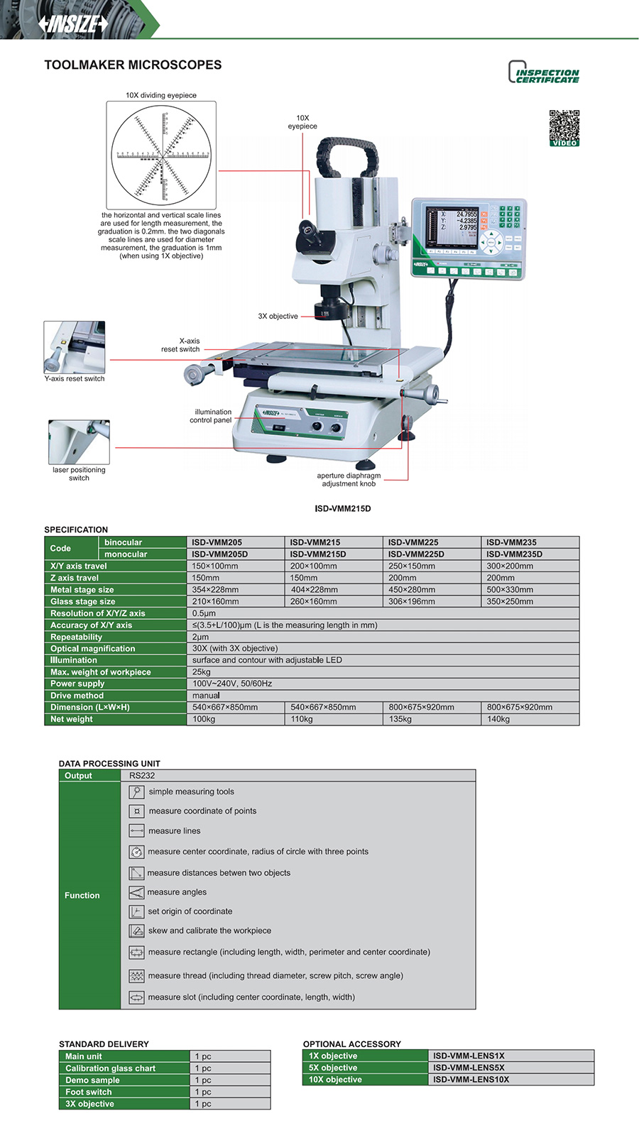 ISD-VMM205D ≤(3.5+L/100)μm 0.5μm 150×100mm 150mm