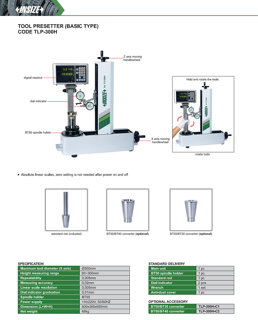 TLP-300H 0.02mm 0.005mm Ø300mm 60~300mm 0.005mm