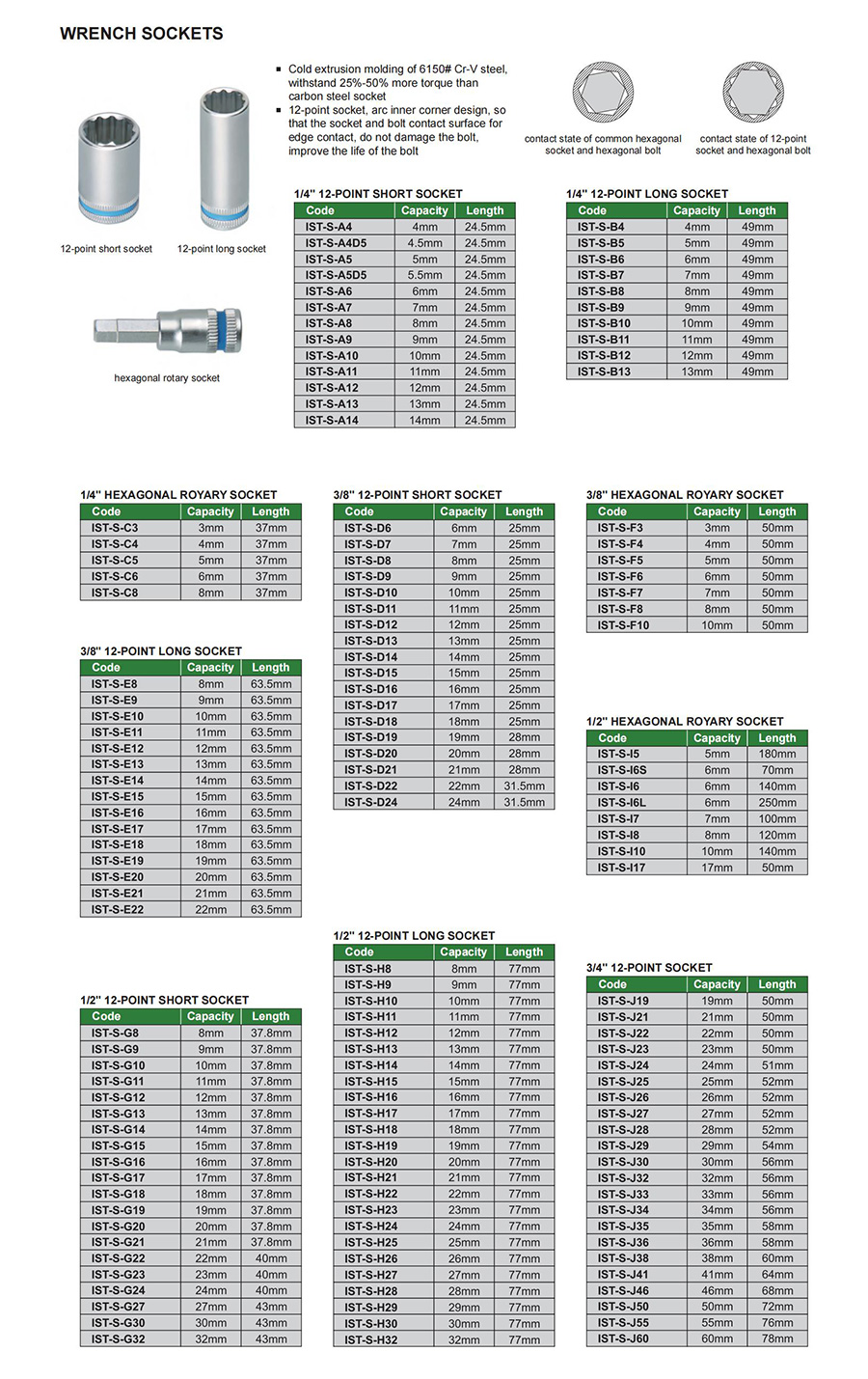 12-point socket, arc inner corner design, so that the socket and bolt contact surface for edge contact, do not damage the bolt, improve the life of the bolt