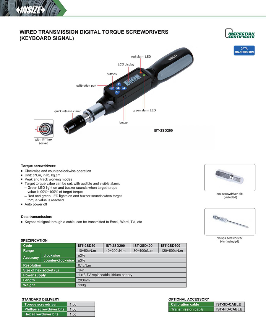 | IST-2SD200 | digital | 40~200cN.m | wired transmission (keyboard signal) | digital display |