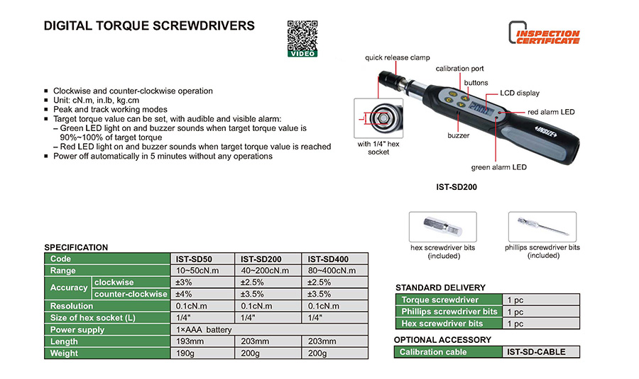 | IST-SD200 | digital | 40~200cN.m | no transmission | digital display |