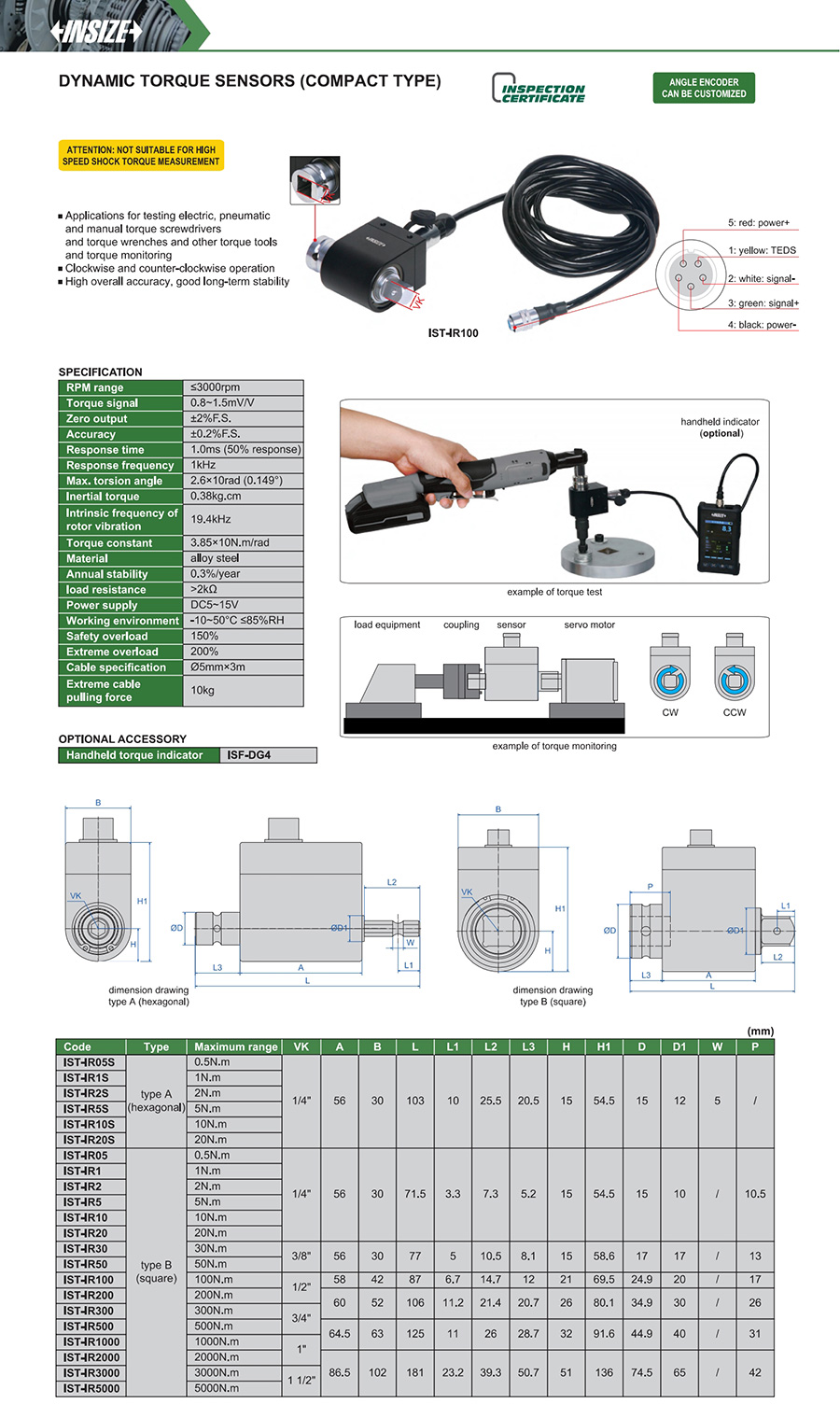| IST-IR5S | rotary type | dynamic torque | portable installation/mounted on machine | no | 5N.m |