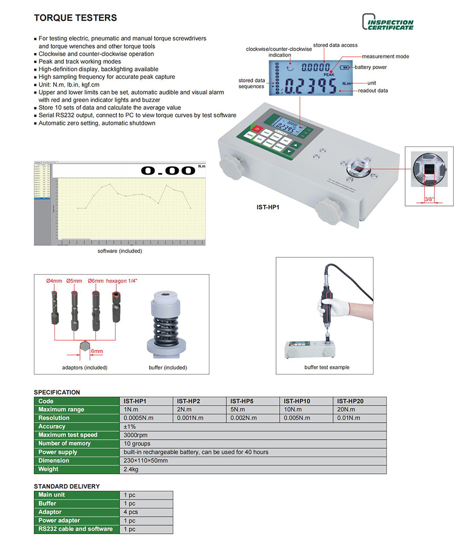| IST-HP2 | fixed type | dynamic torque/static torque | portable installation | yes | 2N.m |