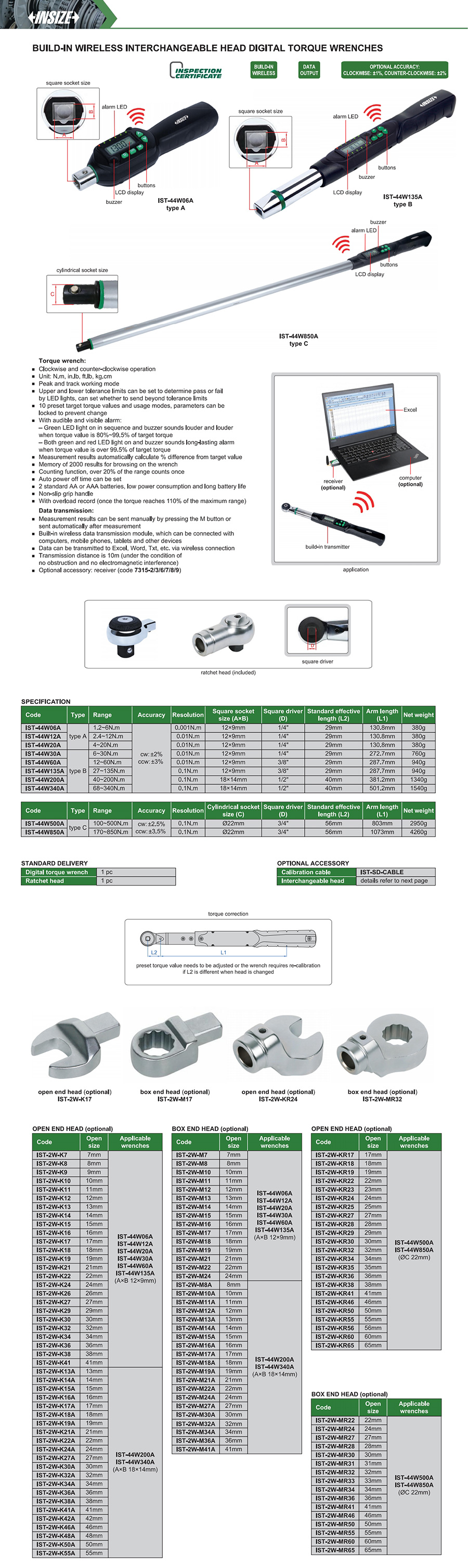 | IST-44W20A | digital | 4~20N.m | wireless transmission (keyboard signal) | digital display | interchangeable head |