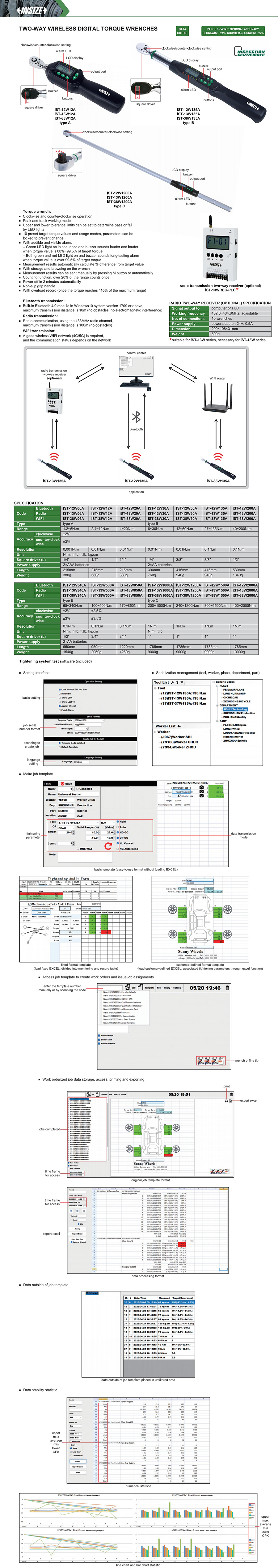 IST-12W60A digital 12~60N.m wireless tightening system digital display fixed ratchet head