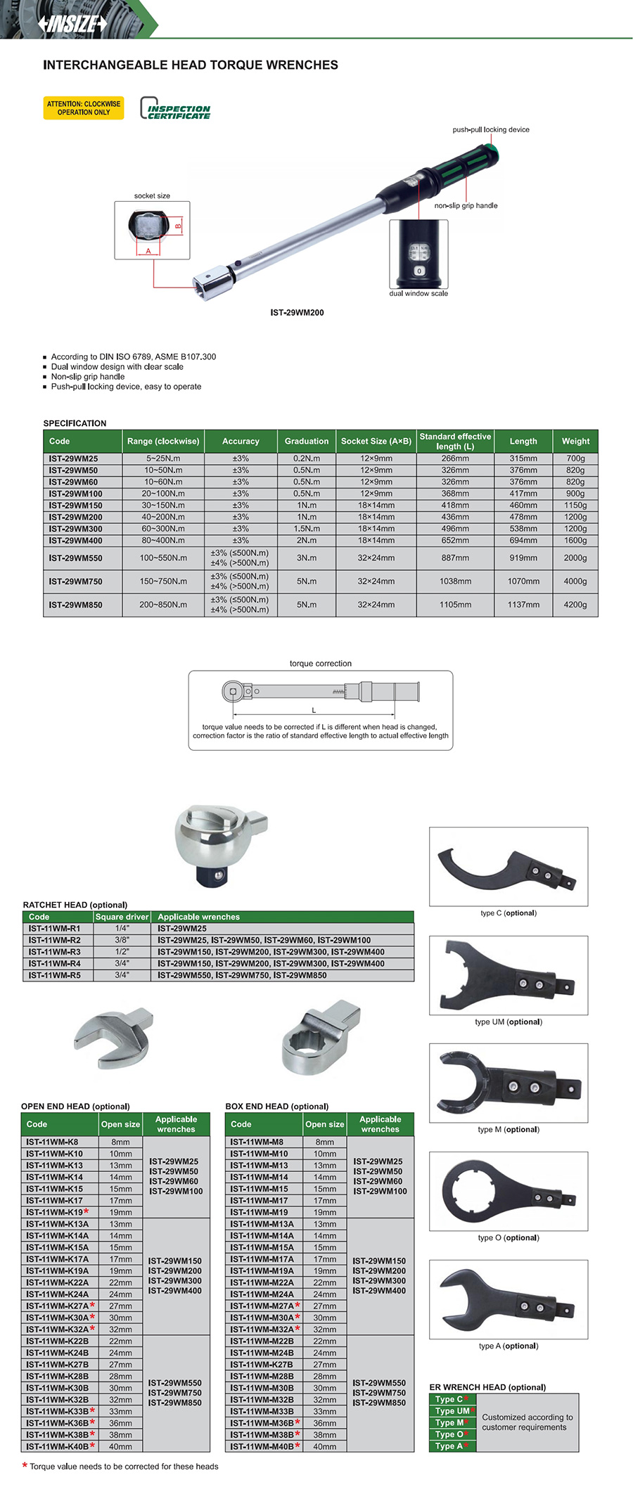 IST-29WM200 mechanical preset 40~200N.m window design interchangeable head