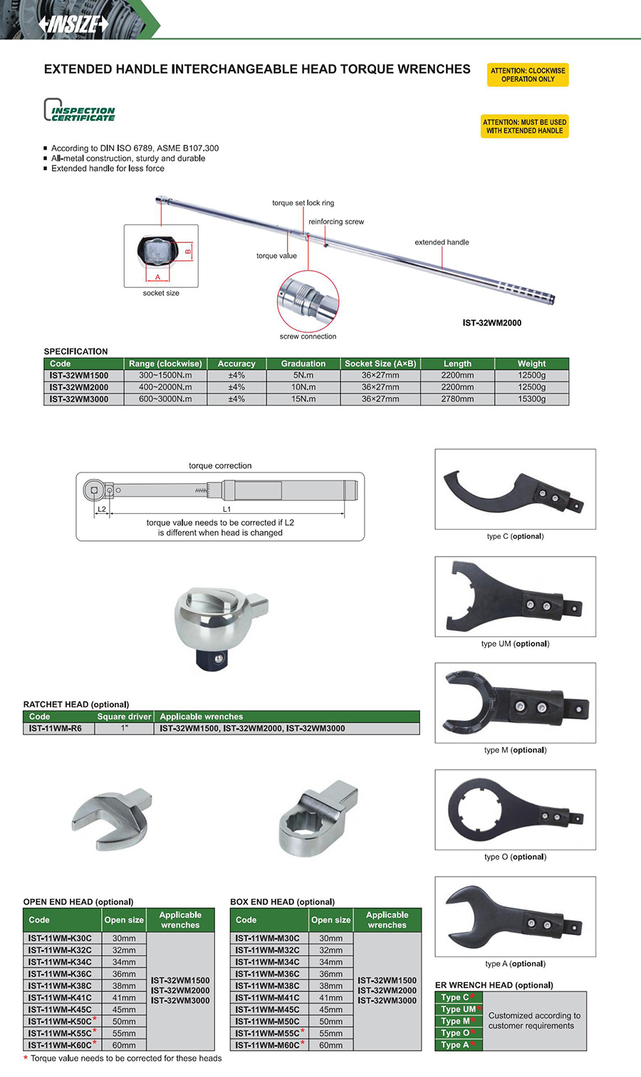 IST-32WM3000 mechanical preset 600~3000N.m engraved-line interchangeable head