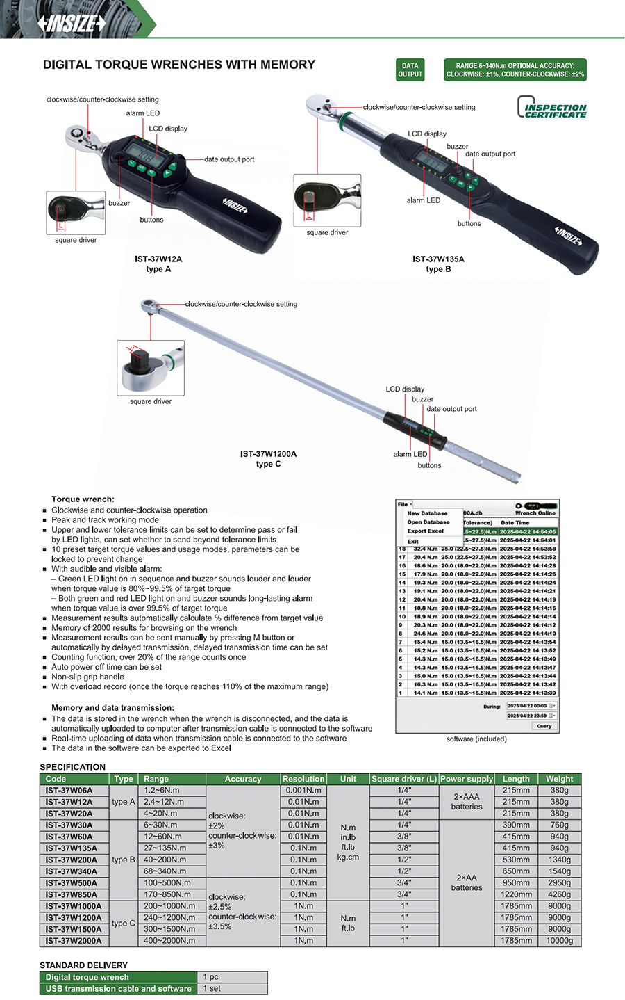 IST-37W60A digital 12~60N.m wired software transmission digital display fixed ratchet head