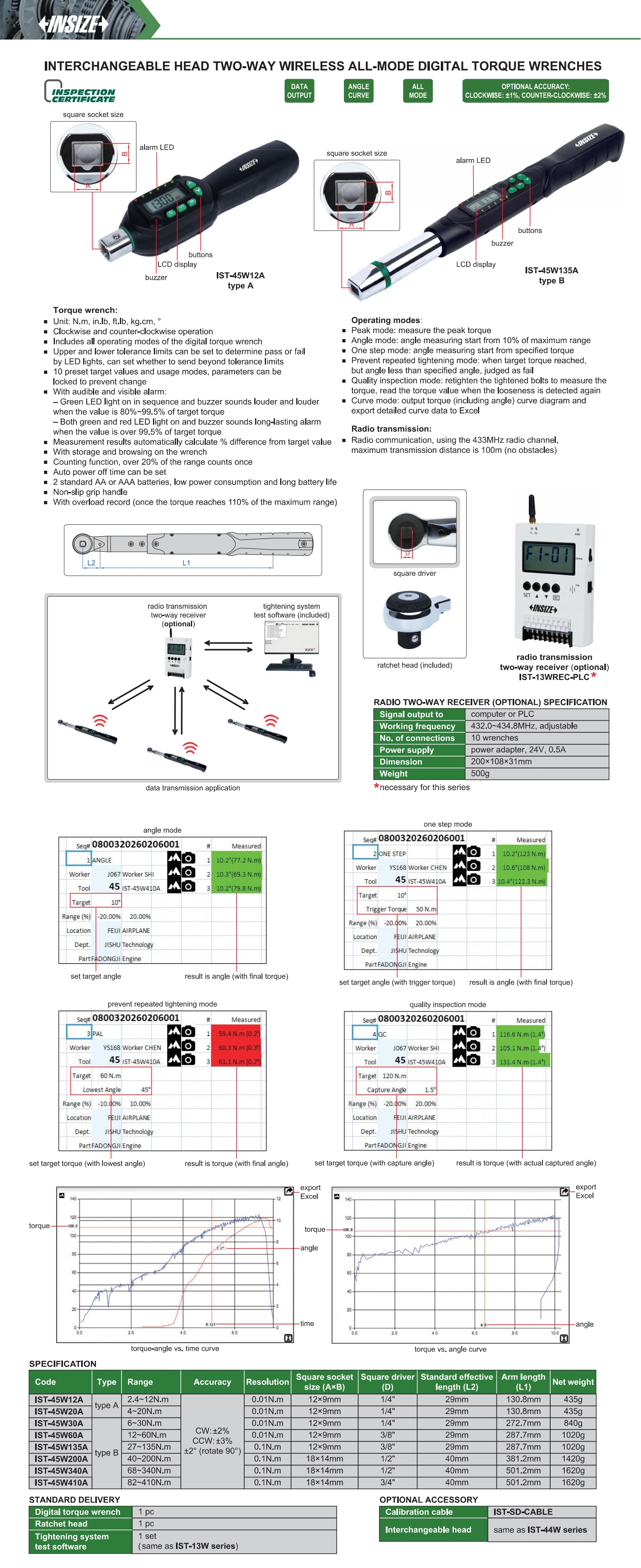 | IST-45W20A | digital | 4~20N.m | wireless tightening system | digital display | interchangeable head |