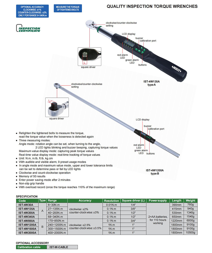 | IST-4W30A | digital | 6~30N.m | with memory storage | digital display | fixed ratchet head |