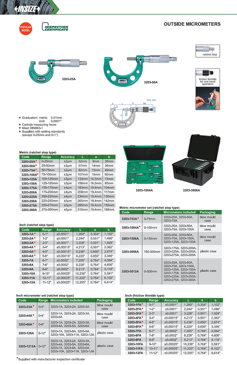 3203-3FA inch (friction thimble) 2-3" ±0.0001" 0.0001"