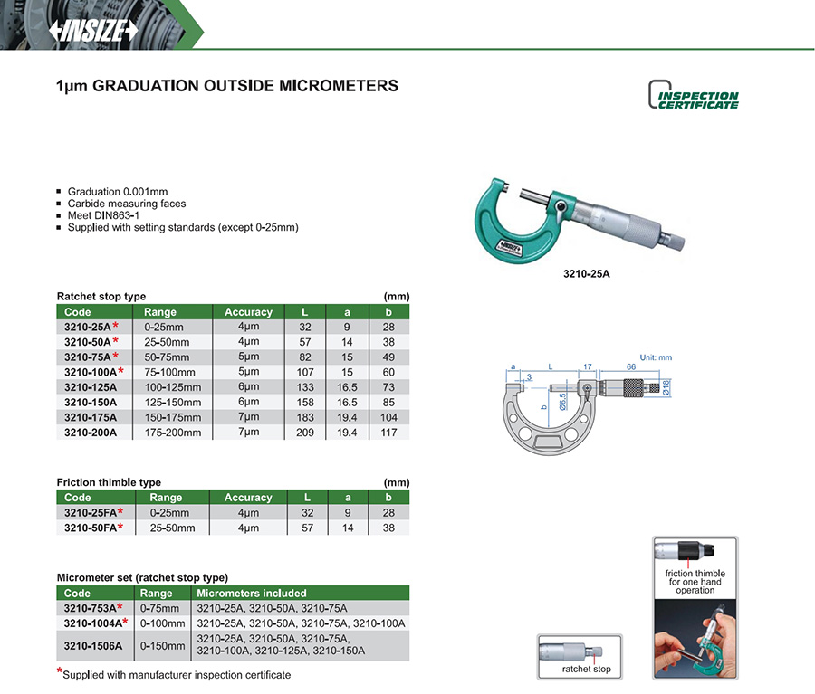 3210-25A ratchet stop 0-25mm 4μm 0.001mm