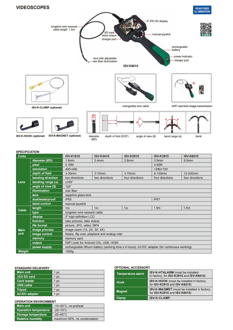 ISV-K6015 0.92M soft (tungsten wire weaved cable) front view 6.0mm 1.5m four directions rear fiber