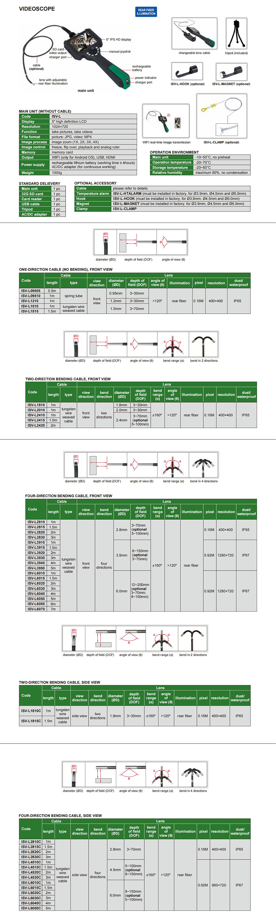 ISV-L6020 0.92M soft (tungsten wire weaved cable) front view 6.0mm 2m four directions rear fiber