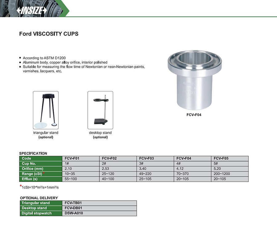 Suitable for measuring the flow time of Newtonian or near-Newtonian paints, varnishes, lacquers, etc.