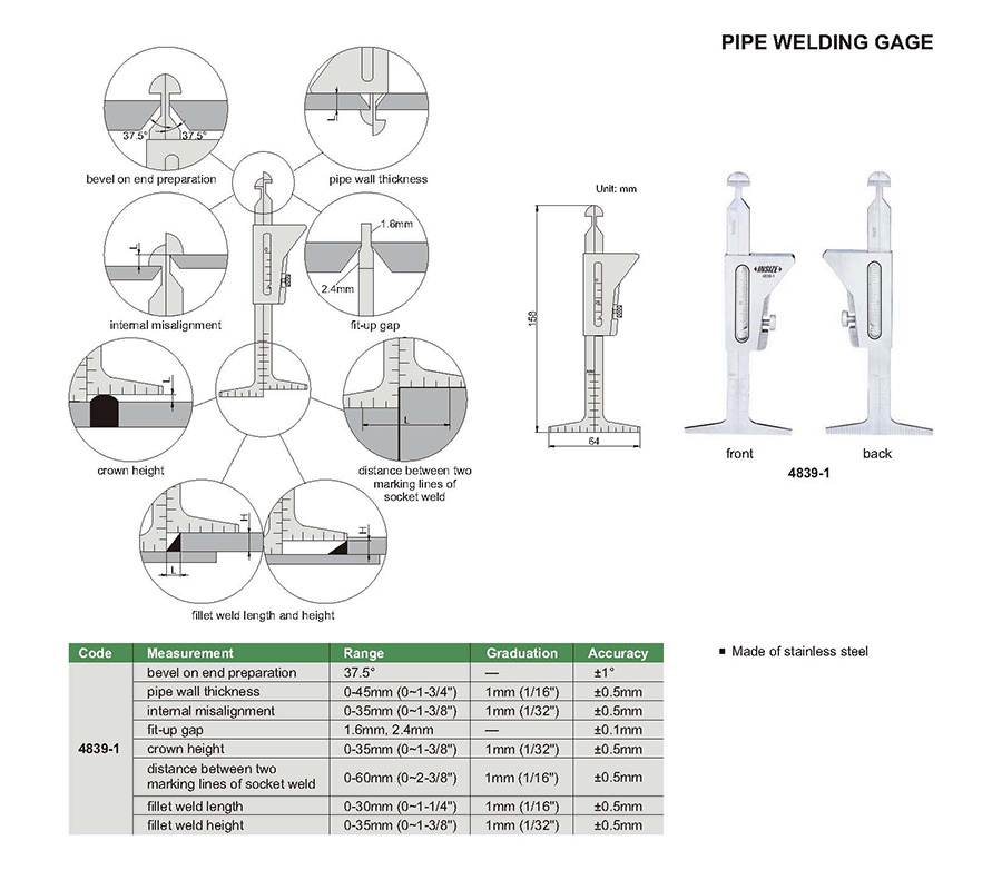 | 4839-1 | 0-35mm (0~1-3/8") | ±0.5mm | 1mm (1/32") | fillet weld height |