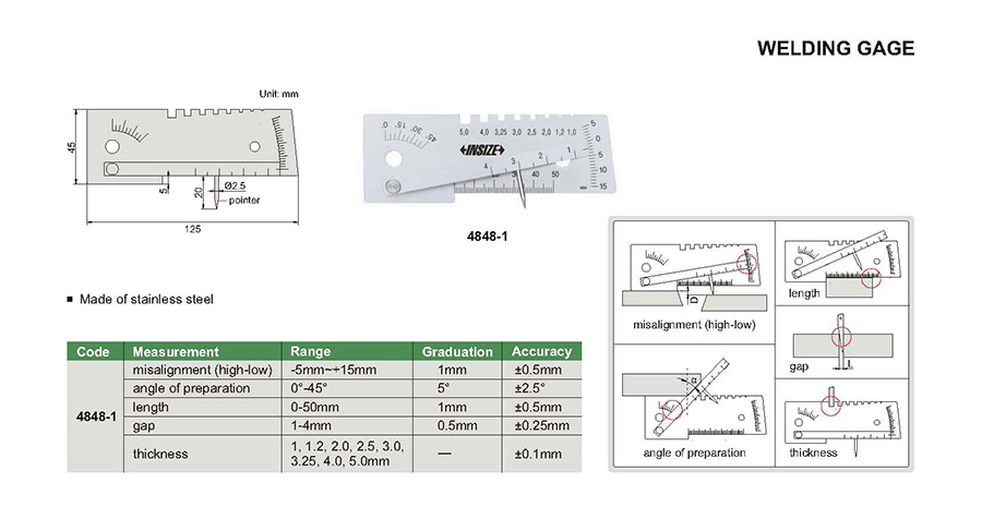 | Code | Range | Accuracy | Graduation | Measurement |